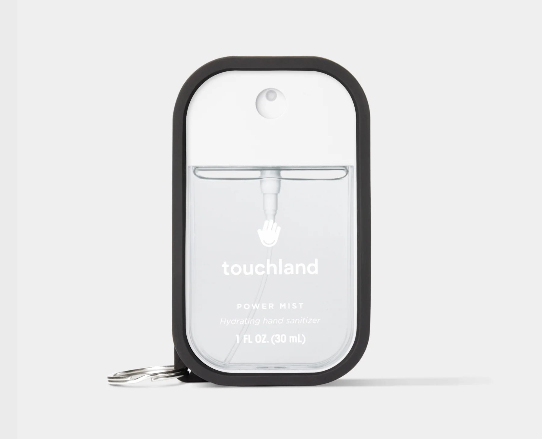 The case features a convenient metal keyring, ensuring your Touchland hand mist is always within reach and easy to access.